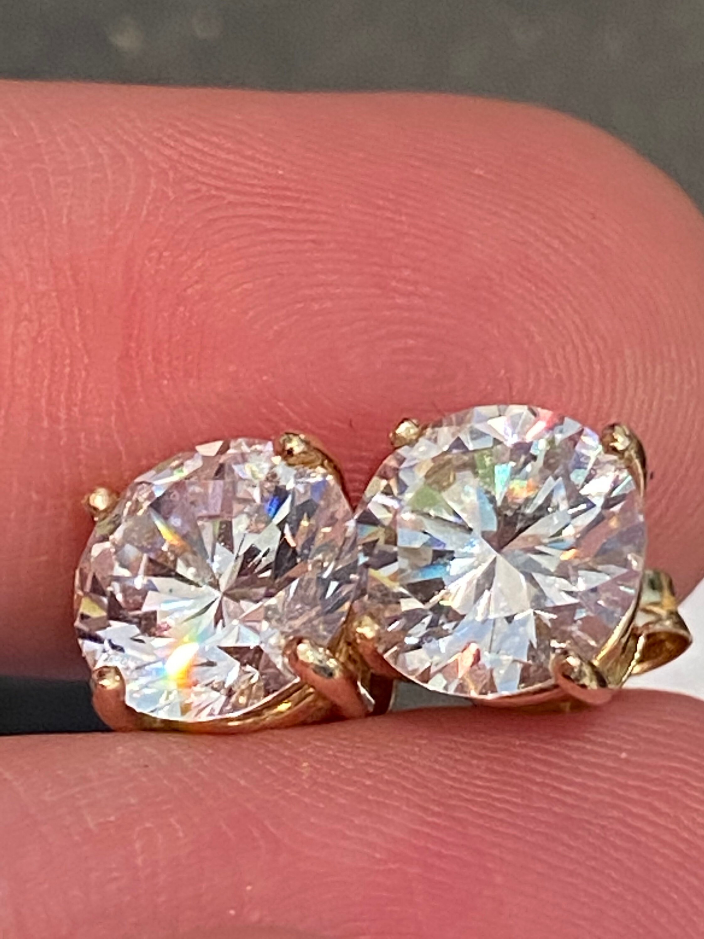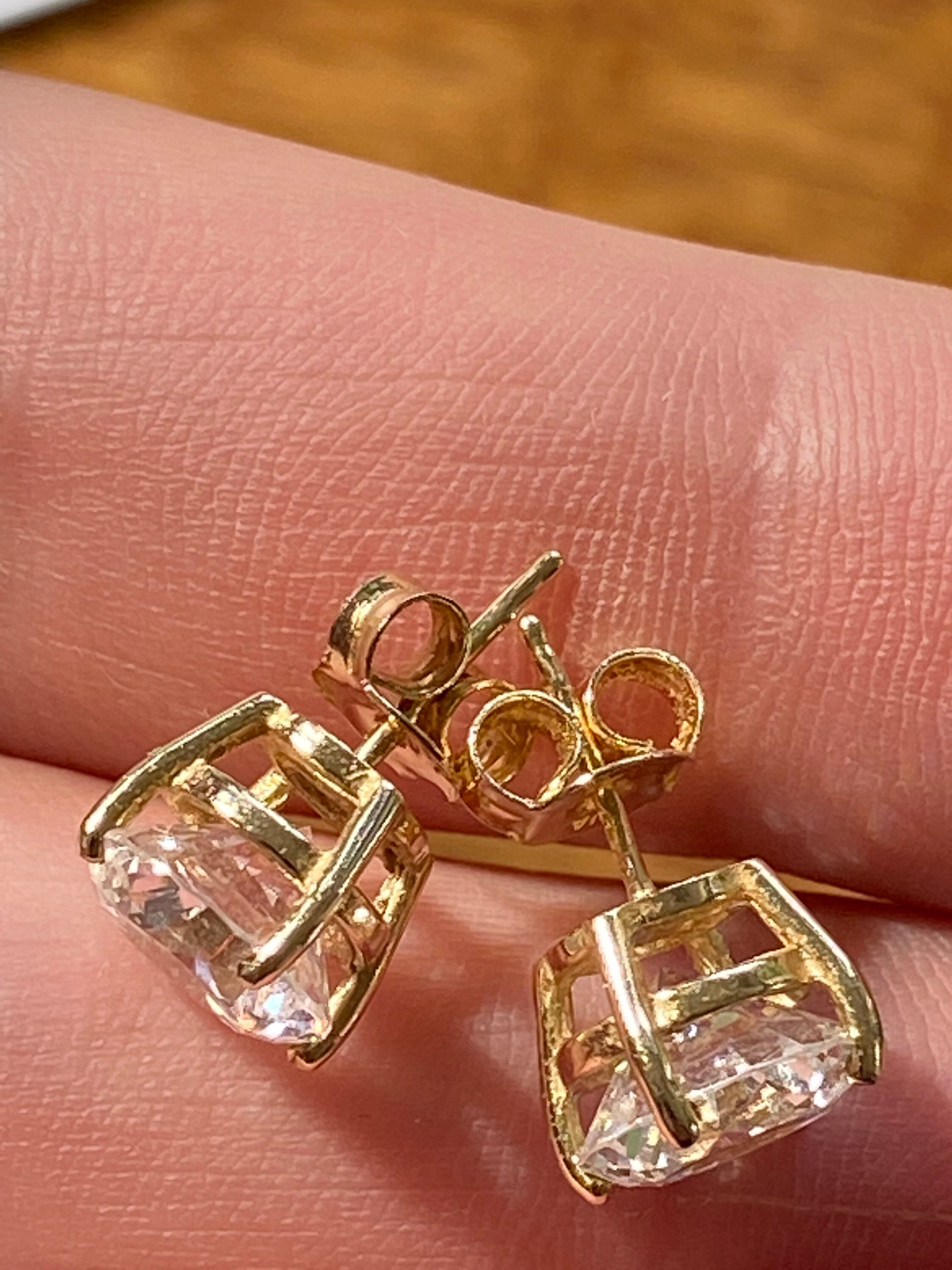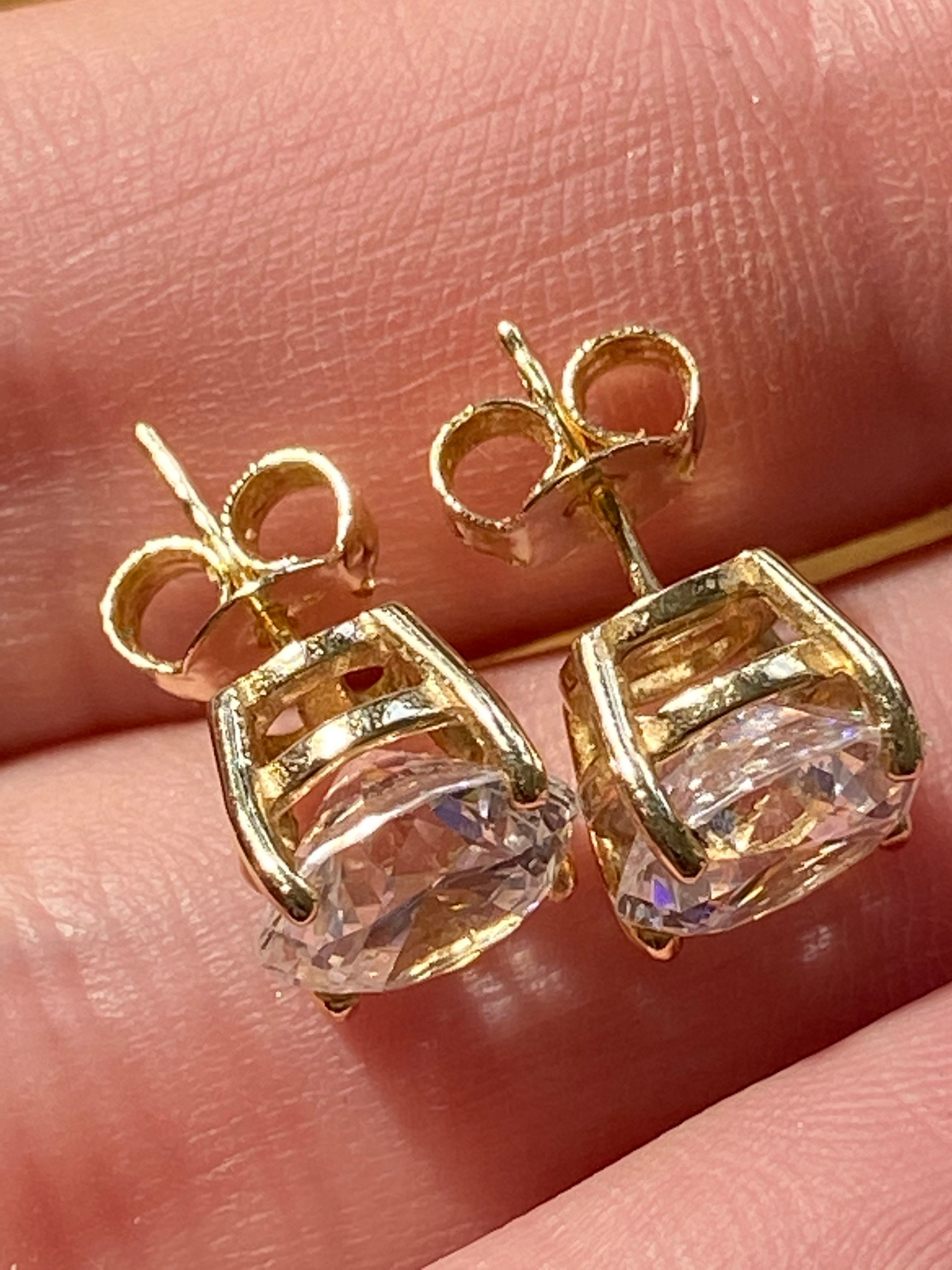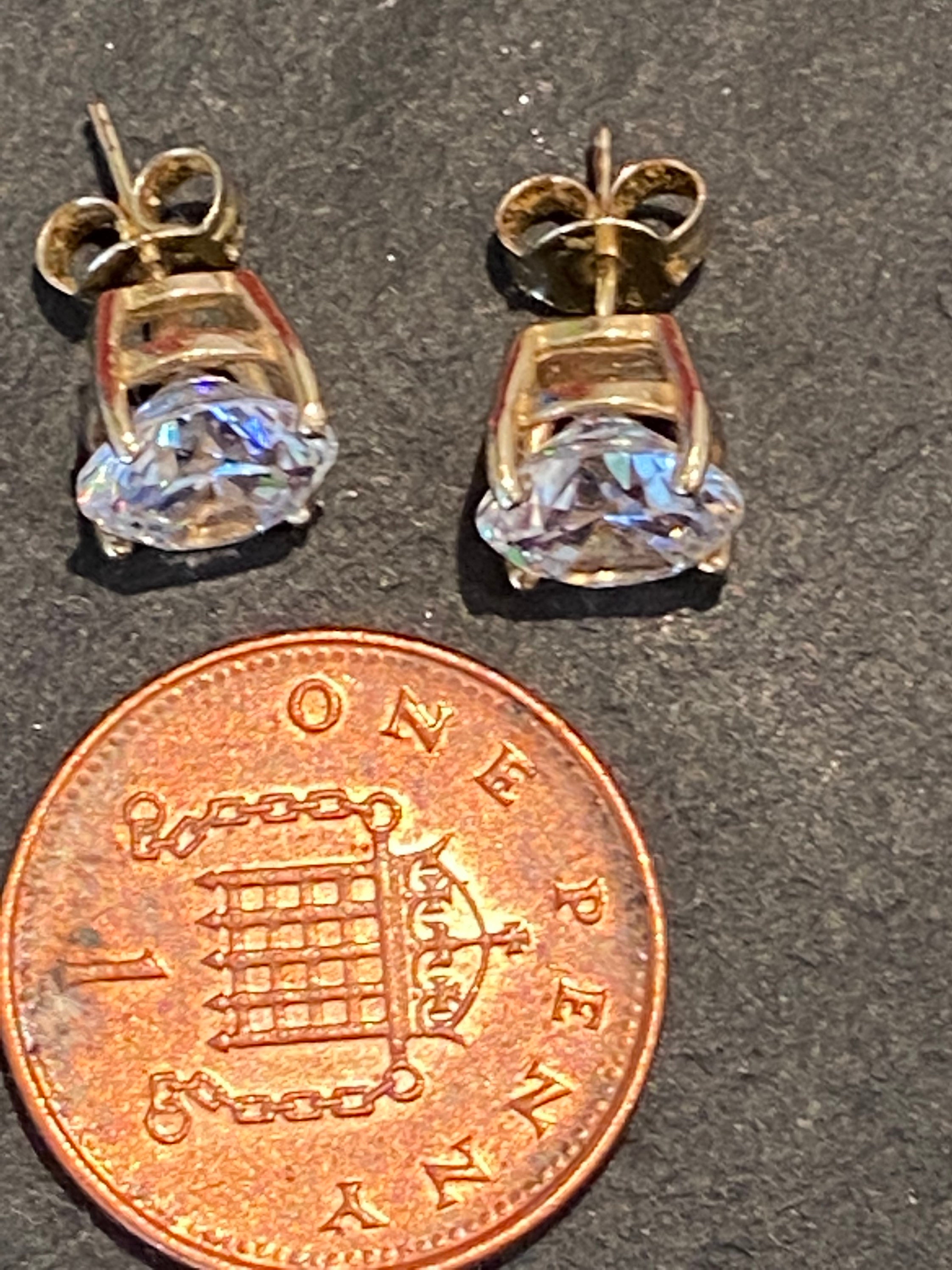 Here are a lovely pair of vintage earrings. They are made from 14 carat yellow gold are set with super sparkly CZ stones. The stems are fully hallmarked 585. The stones measure approximately 0.8cm in diameter.