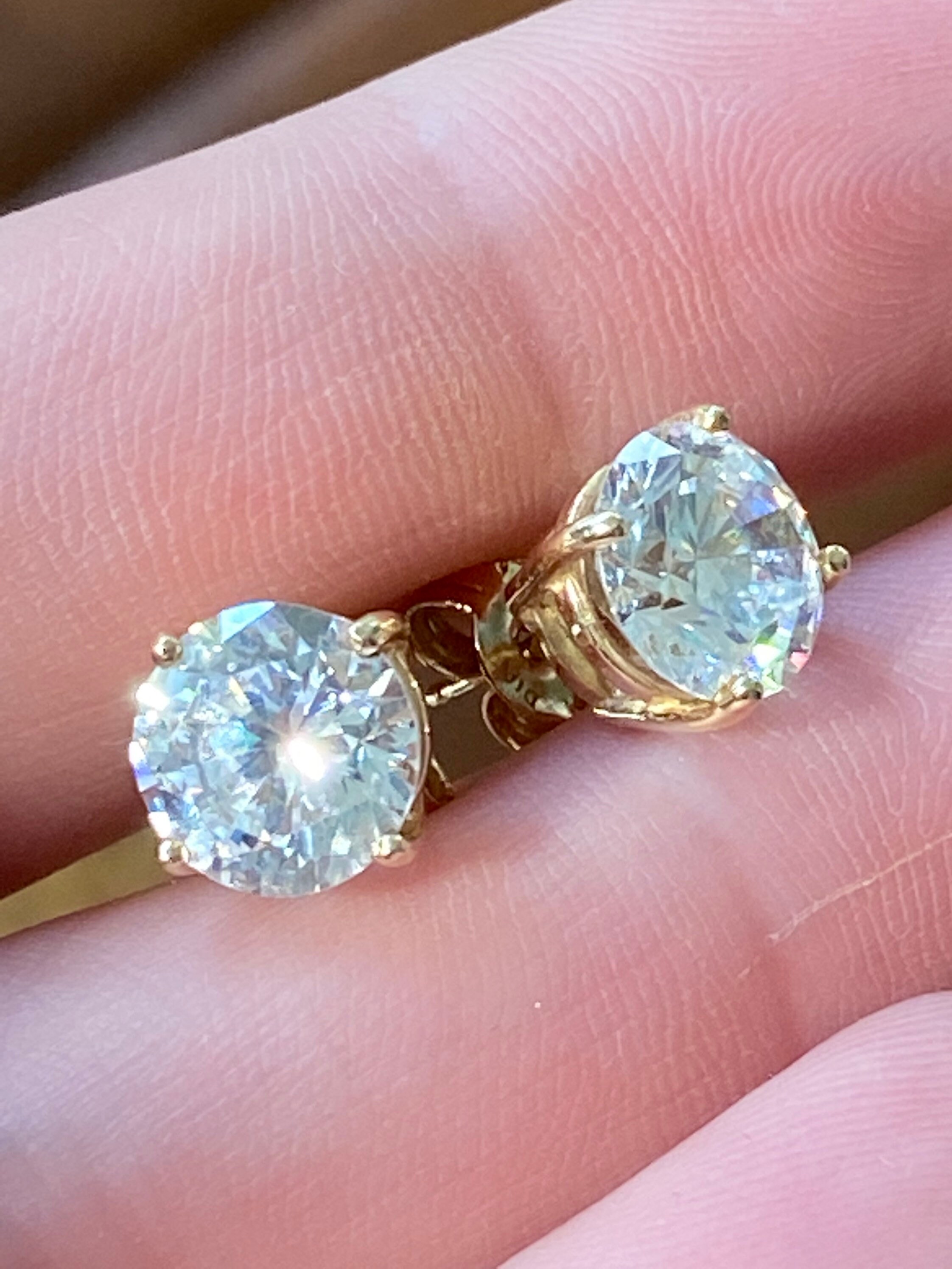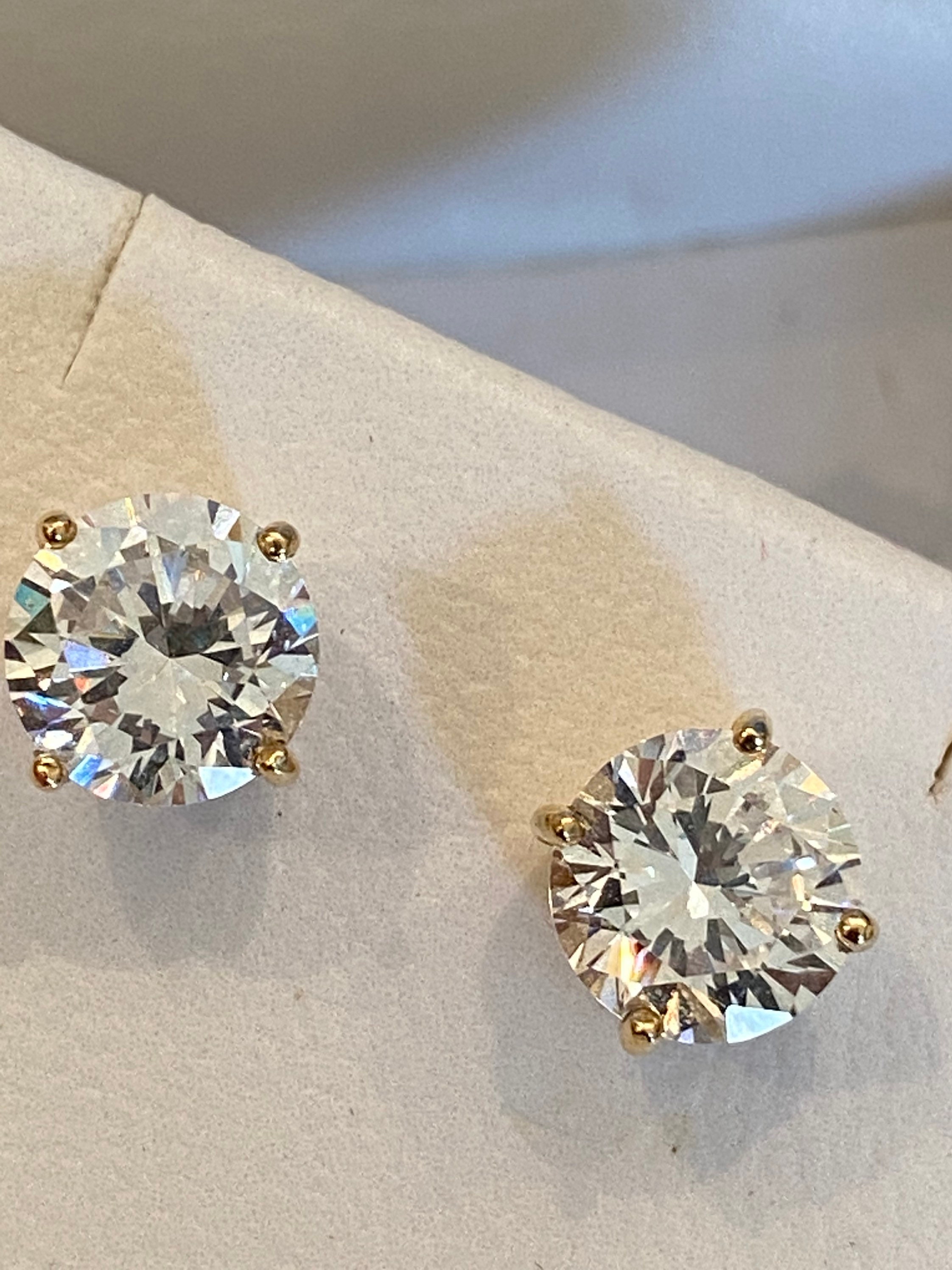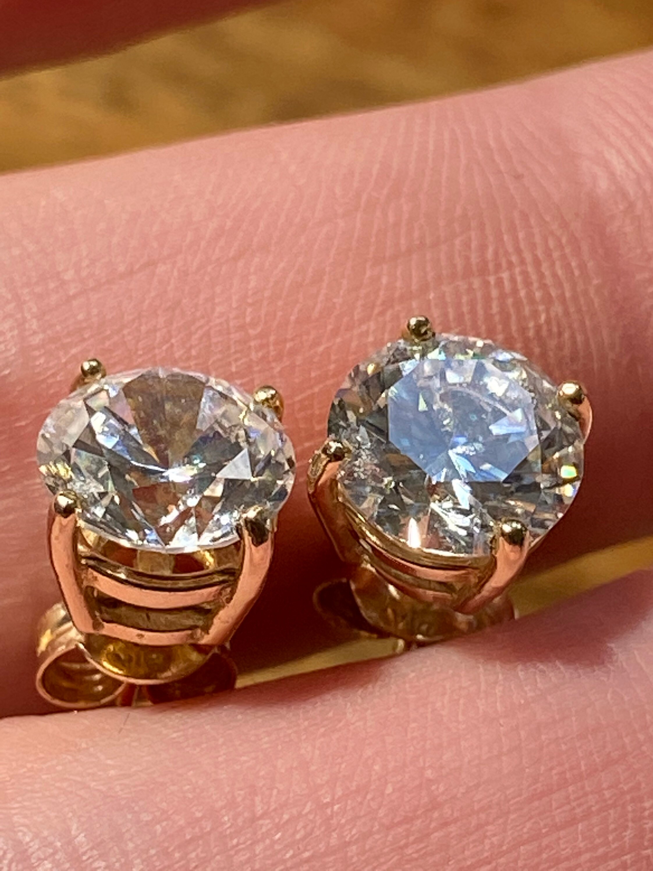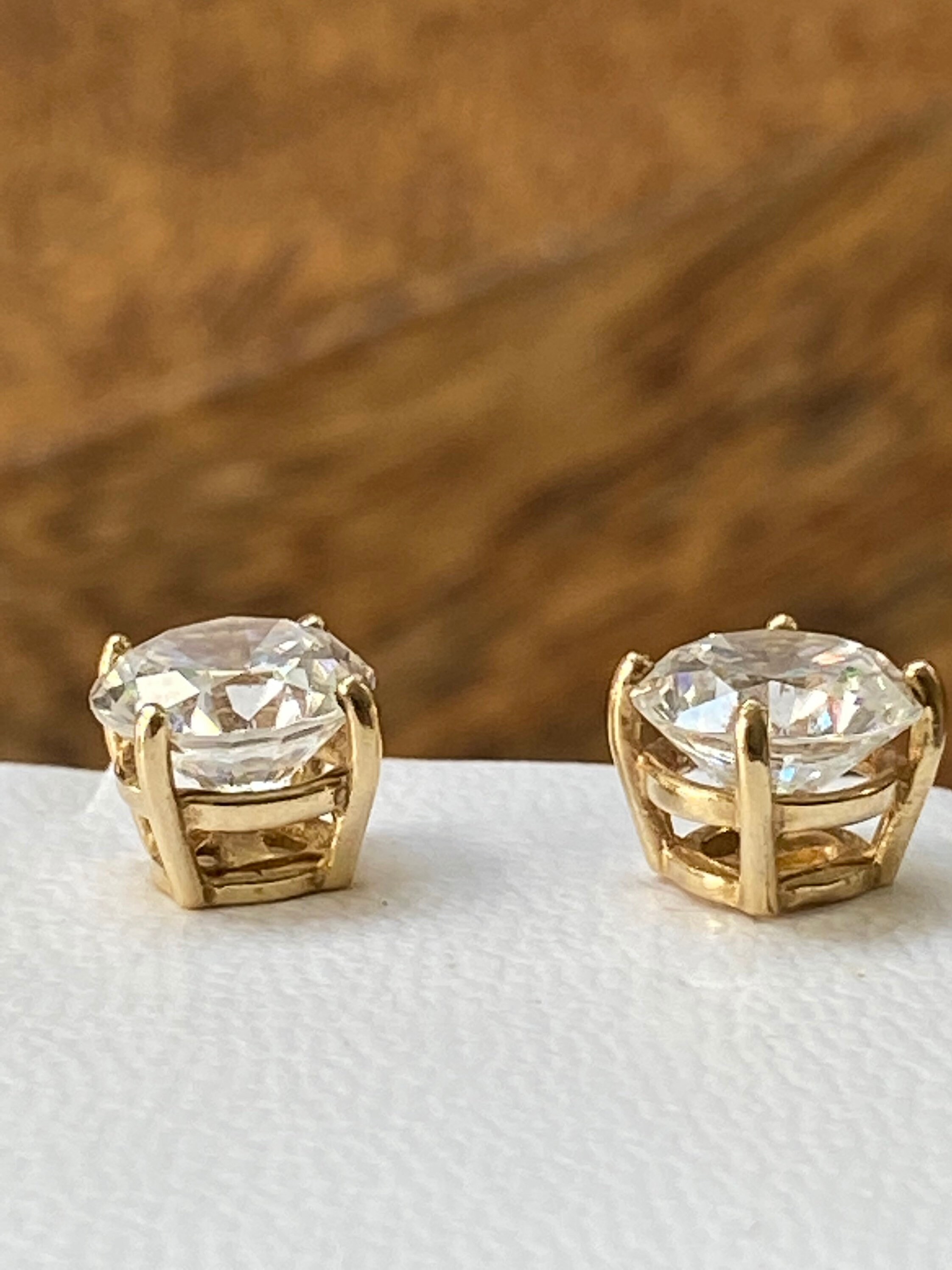 Here are a lovely pair of vintage earrings. They are made from 14 carat yellow gold are set with super sparkly CZ stones. The stems are fully hallmarked 585. The stones measure approximately 0.8cm in diameter.