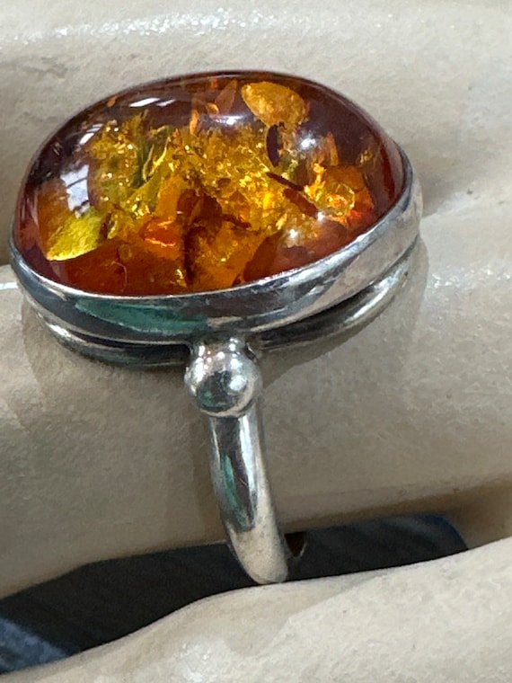 Vintage Honey Baltic Amber Ring, Chunky 925 Silver, Size US 7.45
